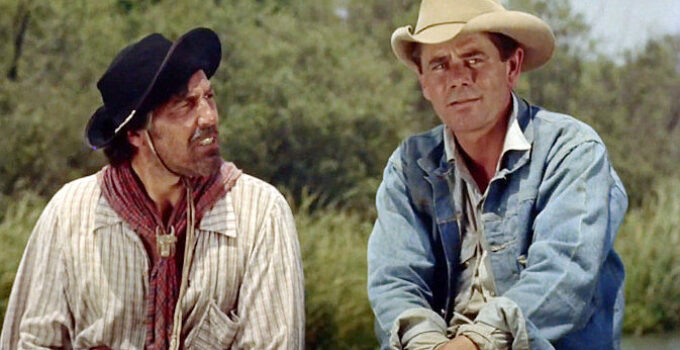 Glenn Ford plays Jubal Troop, who stumbles onto Shep Horgan’s ranch weary and half frozen after being thrown from his horse. Shep (Ernest Borgnine) takes him in, gives him …
